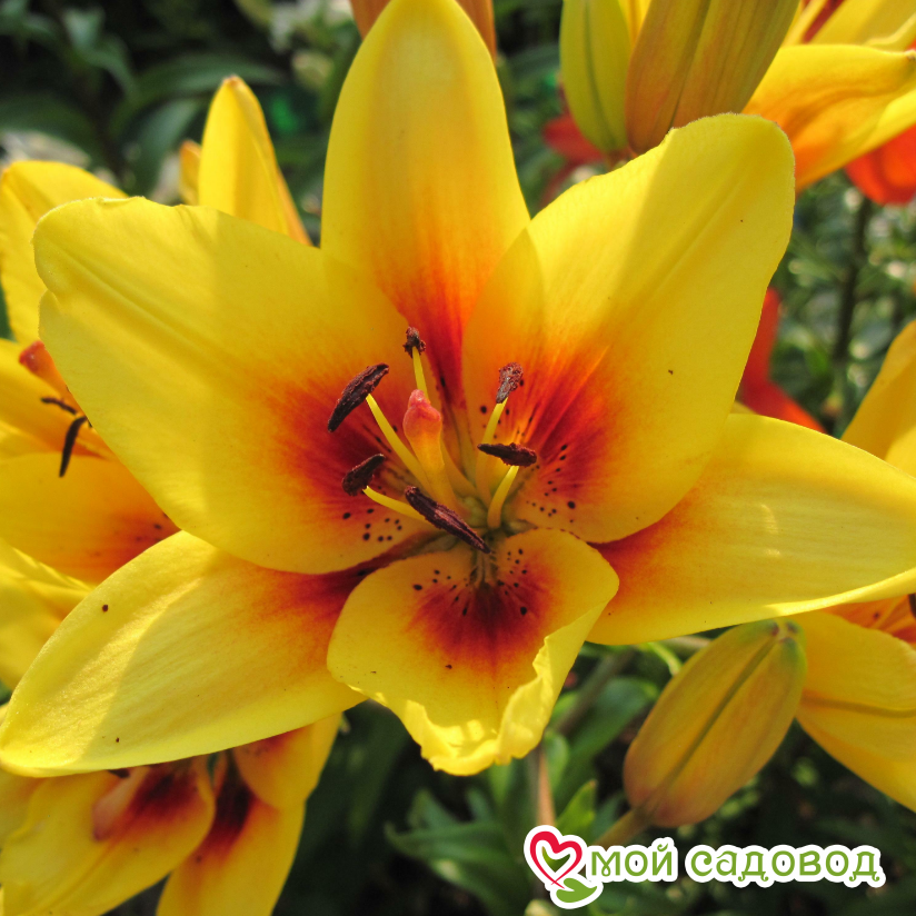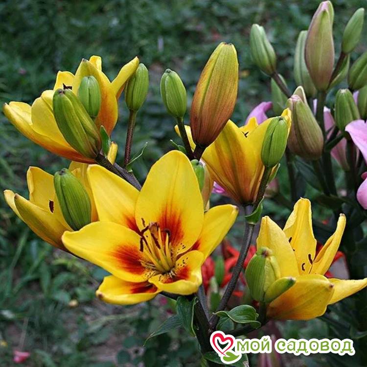Оригинальная лилия с ее необычной окраской станет предметом восхищения гостей и соседей. Цветет этот сорт в середине июля. На стебле образуется до 7 цветков направленных вверх. Лепестки среднего размера, желтые, с красно-коричневым основанием и пыльниками, не отгибаются. Очаровательная лилия необычайно хороша в срезке. Высаживать Grand Cru (Гранд Крю) на клумбе лучше среди многолетников с желтыми или синими цветками. Посадка лилии: Глубина посадки лилии зависит от почвы. Если почва легкая – можно углубить на 12-13 см, что составляет 3-4 диаметра луковицы. Если же почва глинистая или тяжелая, достаточно двух диаметров, глубина лунки не более 5 см. В выкопанную ямку насыпьте слой песка, установите луковицу донышком на песок, присыпьте сверху остатками грунта, сверху замульчируйте. Уход за лилией: Пышных бутонов у лилий можно добиться, соблюдая обычные правила ухода: в первый год лилиям не нужна весенняя подкормка, удобрения вносятся разово за сезон, после цветения. Но это лишь в том случае, если перед посадкой вносилось удобрение. Перед началом цветения высокорослые сорта рекомендуется подвязать. После цветения засохшие бутоны удаляют. Полив умеренный: лучше не долить, чем перелить. Если цветок начал чахнуть и имеются подозрения на перелив – смешайте по столовой ложке речного песка и древесной золы, высыпьте под цветок и не поливайте ближайшую неделю. Полив лилии важно проводить под корень, старайтесь исключить попадание воды на листья, это провоцирует ожоги на солнце и распространение грибковых заболеваний.